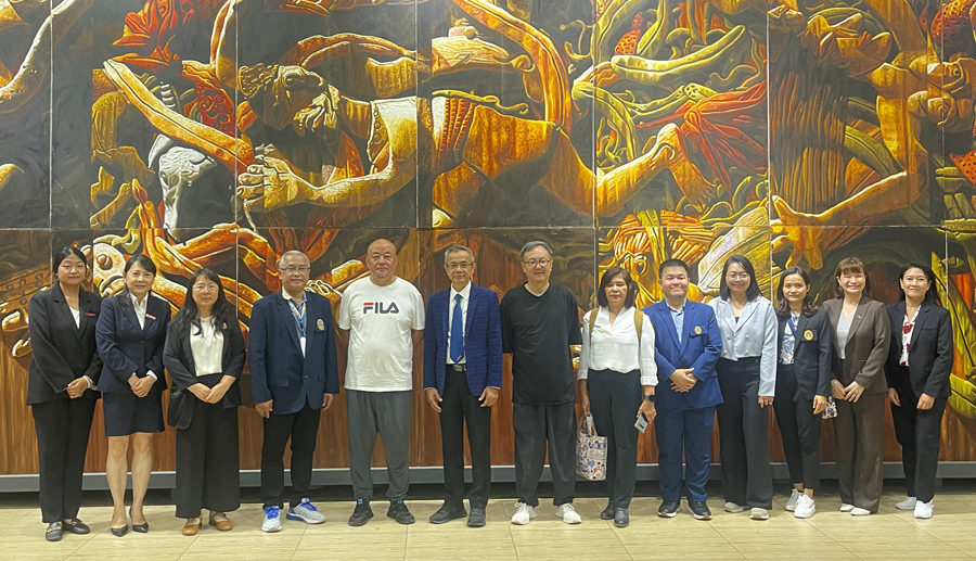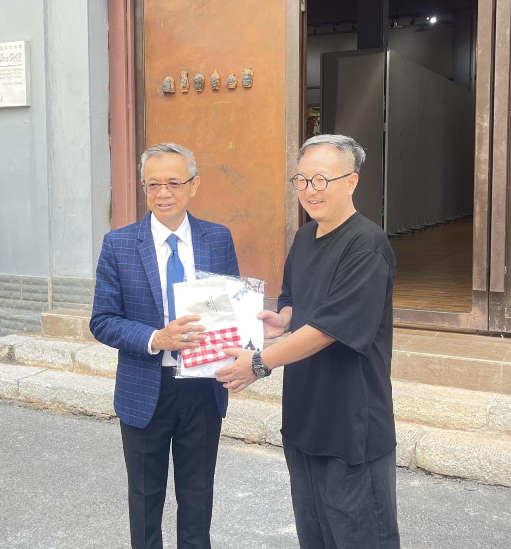2024年6月4日上午,泰国呵叻皇家大学校长阿迪索恩·纳瓦农达博士、呵叻皇家大学董事会副主席阿努特·贾萨姆拉恩、学术推广与注册办公室主任萨恩费奇·普拉查伊博士一行11人到传习馆参观交流。传习馆馆长王飚代表传习馆向来宾们表示热烈欢迎,随后带领来宾参观了传习馆新馆及老馆的全部展区,详细介绍了云南“金木土石布”特色工艺及相关展品。王飚馆长还与来宾分享了传习馆与泰国高校多年的学术交流与成果,阿迪索恩·纳瓦农达校长欢迎王飚馆长及传习馆教师再到泰国合作交流,并向传习馆赠送了泰国呵叻皇家大学文创产品。