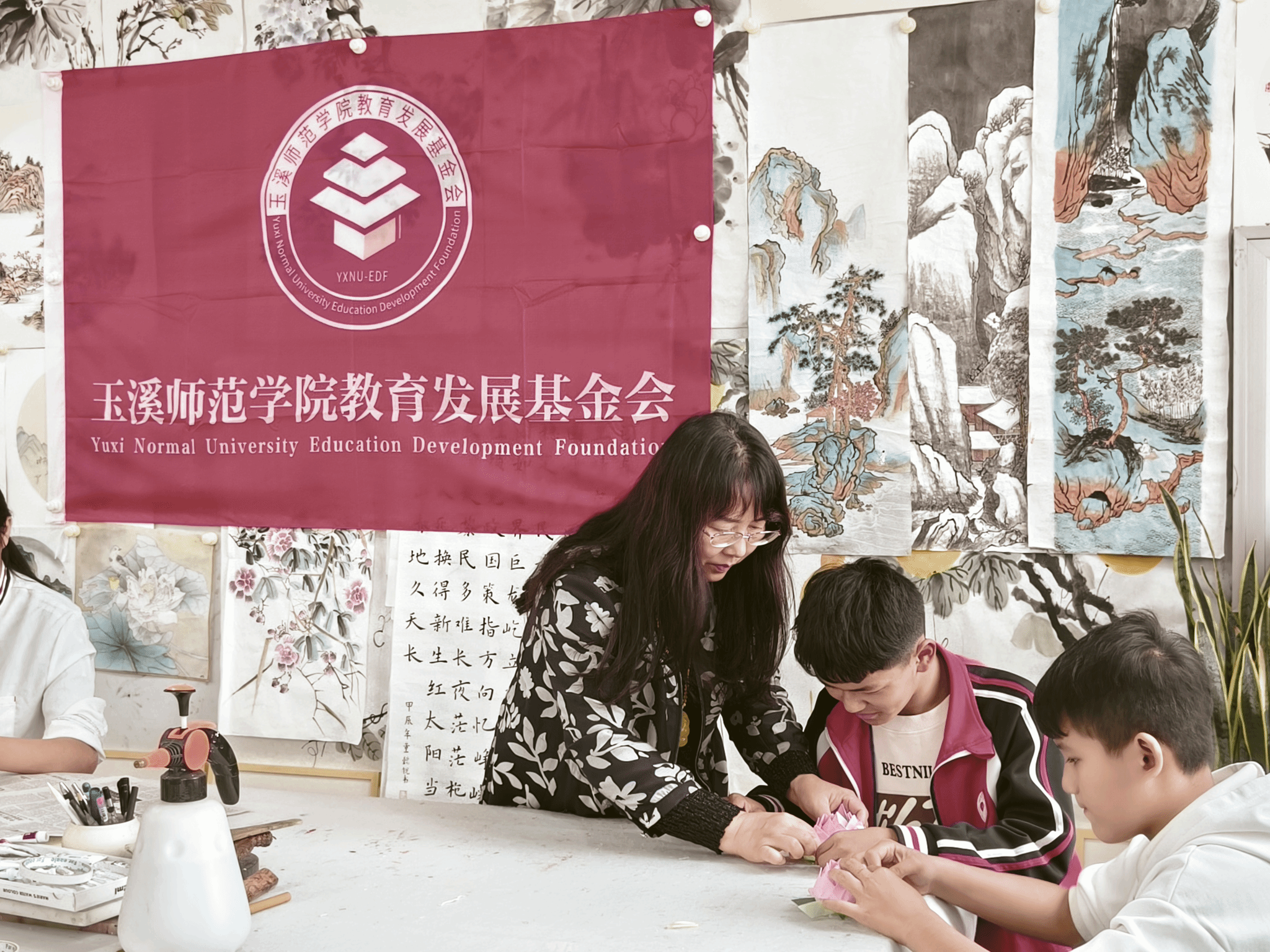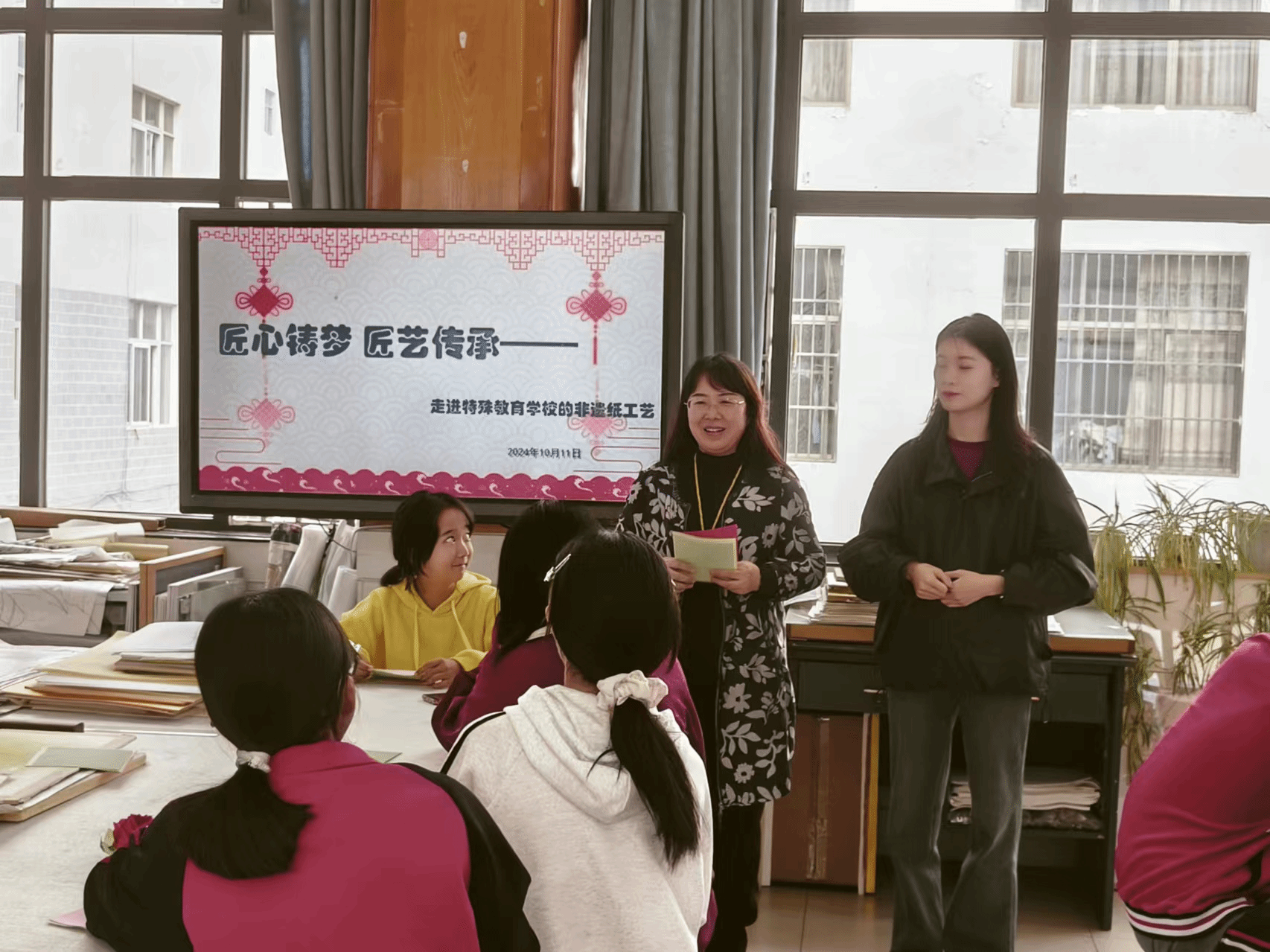 金秋十月,秋意渐浓。在这充满收获和温馨的季节里,2024年10月10日下午,一场以“匠心铸梦 匠艺传承”为主题的非遗纸工艺项目活动在玉溪市特殊教育学校成功举办。此次活动依托玉溪师范学院教育发展基金会资助的公益项目《匠心铸梦 匠艺传承——走进特殊教育学校的非遗纸工艺》,由玉溪师范学院湄公河次区域民族民间文化传习馆副馆长冯丽荣老师与玉溪市特殊学校柳晓燕副校长精心策划完成。项目团队充分利用高校优势资源,传授非遗纸艺莲花的制作方法和技巧,旨在传承和创新优秀传统文化,传递爱心与温暖,增强特殊学生群体的文化自信与自豪感。