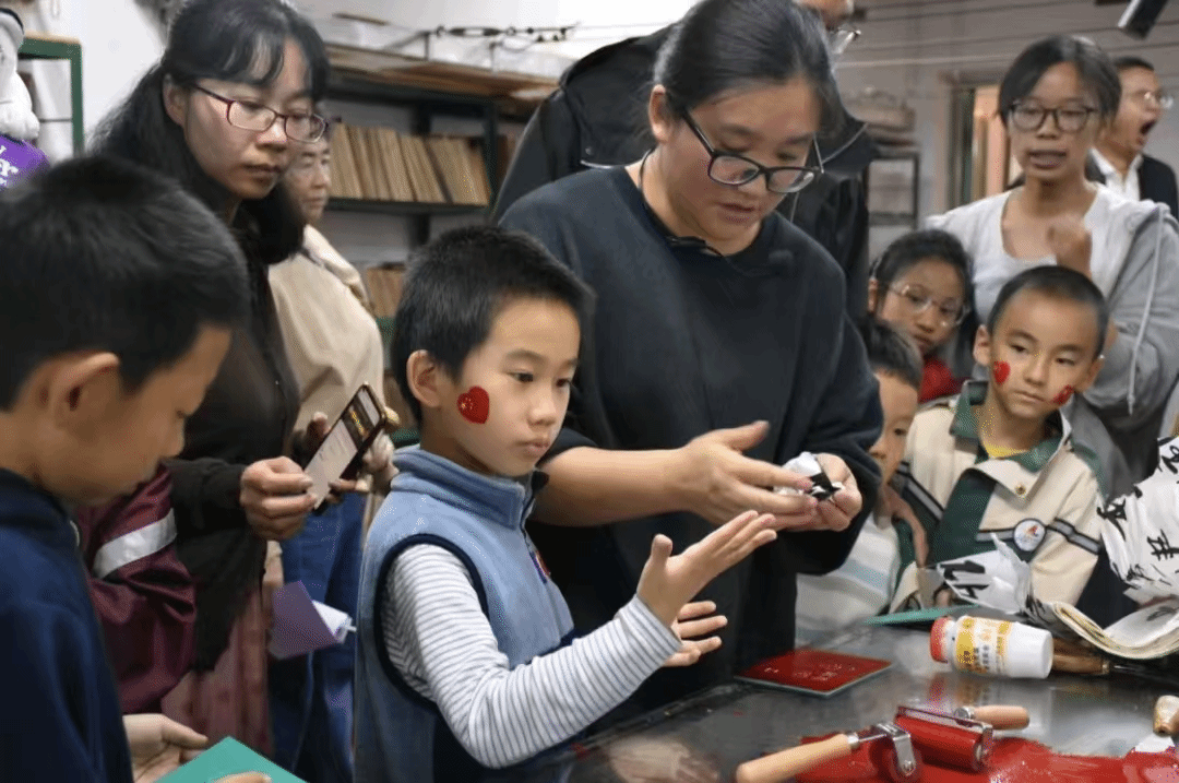 其中“中国传统印刷术非遗文化体验”活动在传习馆举办,传习馆教师单平为本次活动的授课教师,单老师把聂耳和国歌的故事融入红色木刻版画中去,以艺术创作的形式来讲好红色故事,让孩子们感受来自原始质朴手工印刷制作的乐趣。