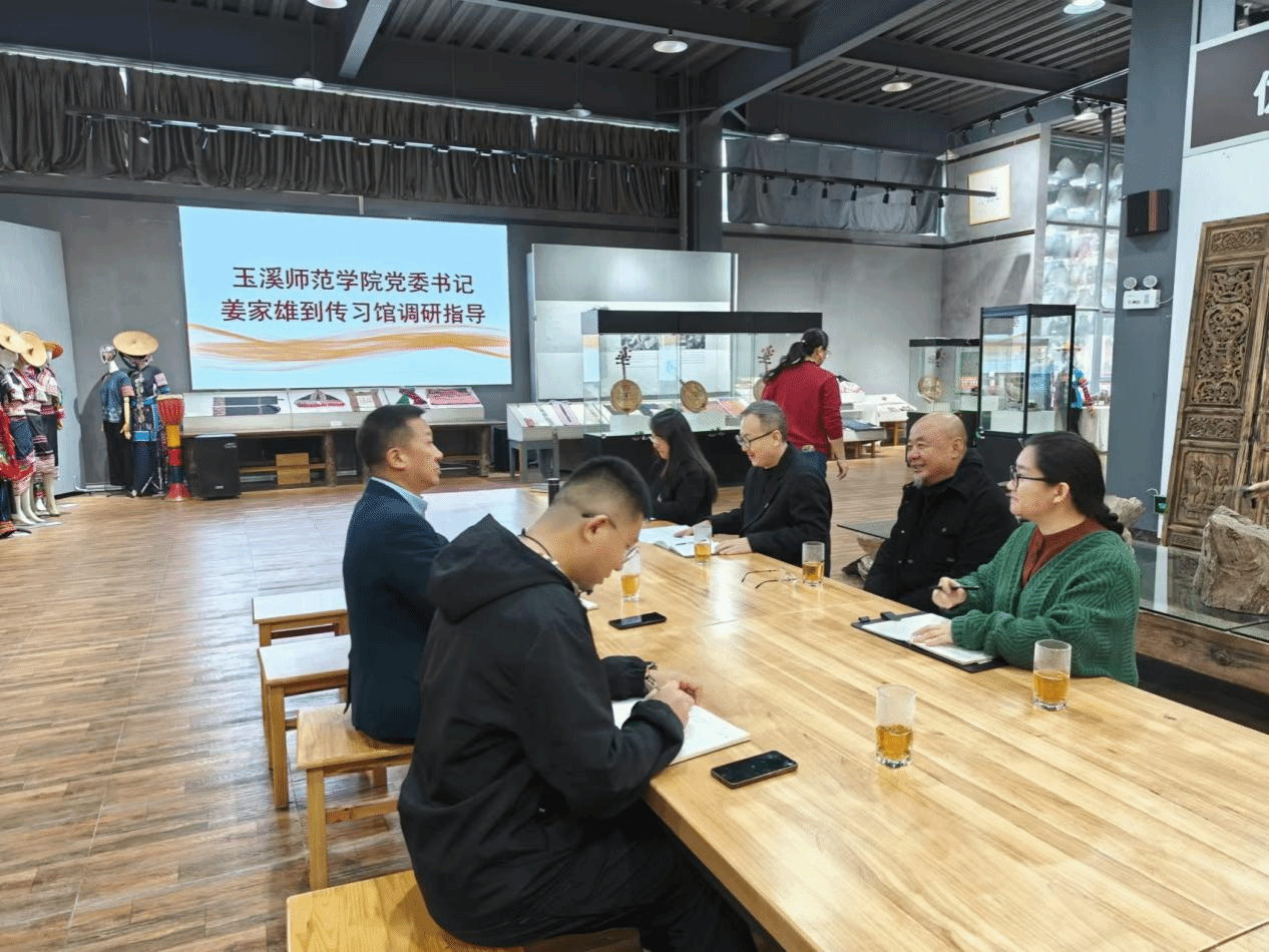 11月5日,玉溪师范学院党委书记姜家雄到传习馆进行工作调研,传习馆领导班子成员参加调研交流。