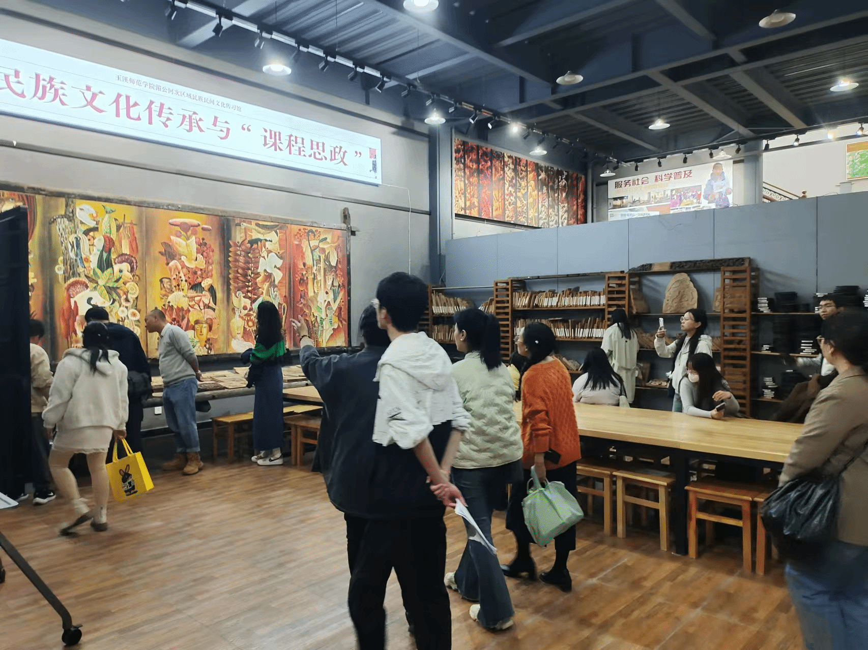 传习馆作为云南省内知名的传统文化传承及科普教育基地,一直以来都致力于传统文化的传承与创新。此次参观学习中,传习馆教师带领老师们参观了传习馆的各个展厅,包括公共美育空间、木雕传习室、陶艺工作室、民间版画展区、古生物展厅以及正在进行的“印界·延伸”云南民族民间木版画传统技艺与现代创意艺术作品展,并介绍了传习馆的历史背景、文化传承以及独特的情景化教学模式。