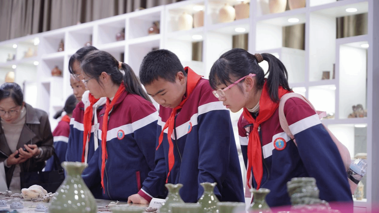 随后单老师带领学子们参观传习馆。单老师讲解了传统木雕、各类陶艺、民间版画、古生物等优秀传统文化及科学知识,展示了省级非物质文化遗产保护传承基地和科普基地的独特魅力,激发了学生们探索优秀传统文化和世界自然遗产的浓厚兴趣。