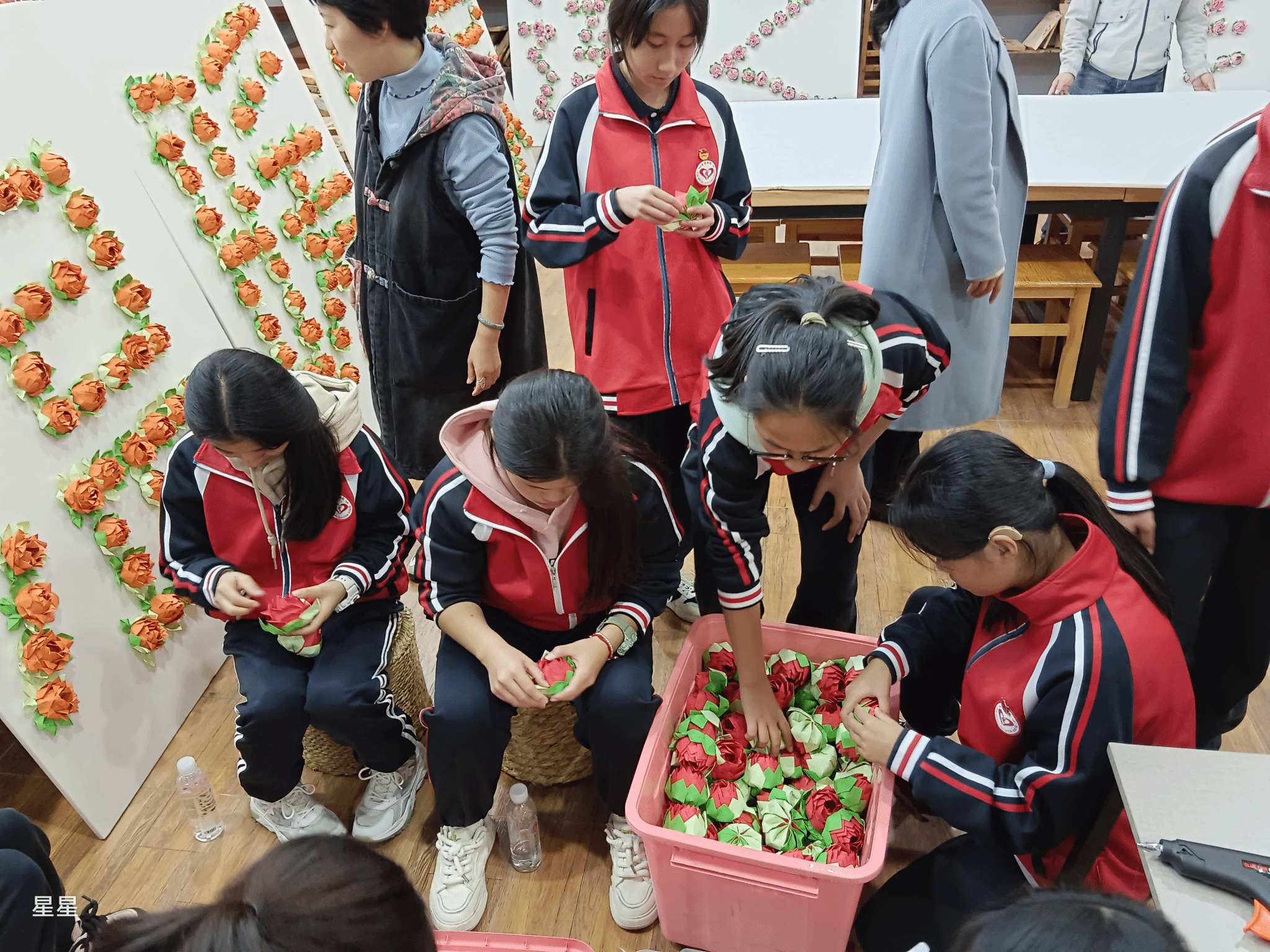 首先,传习馆副馆长冯丽荣老师为大家详细介绍了传习馆的发展历史、当前场馆建设及未来发展规划。随后,开展教学实践活动,冯老师通过讲解示范,指导孩子们用折好的一朵朵莲花,通过巧妙的排列组合,一步步拼出了“盛世中国、莲之约、温暖的家、同一片蓝天”四组寓意深远的艺术造型。每一个字、每一个造型,都凝聚着项目组老师的精心构思和美好期许,也承载着孩子们对美好生活的向往与追求,体现出对传统文化的兴趣与热爱。