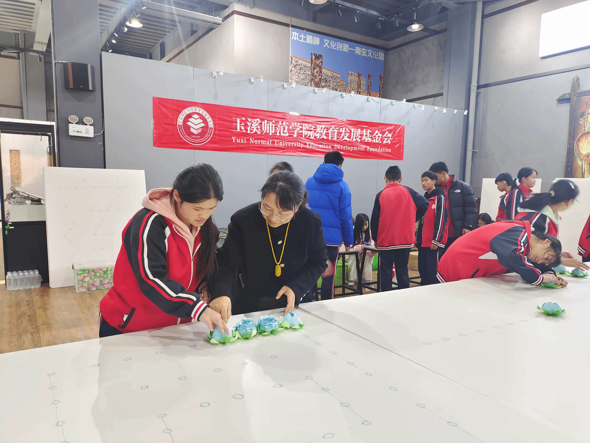 12月9日下午,玉溪市特殊教育学校的师生20余人,由柳晓燕副校长带队,来到玉溪师范学院传习馆,开展第2期教学实践活动并参观传习馆。本次活动旨在将非遗纸工艺这一传统文化瑰宝引入特殊教育学校,让孩子们也能感受到传统文化的魅力,同时用他们的巧手和智慧,掌握非遗纸工艺技能,共同编织一个关于“盛世中国、莲之约、温暖的家、同一片蓝天”的美好愿景。