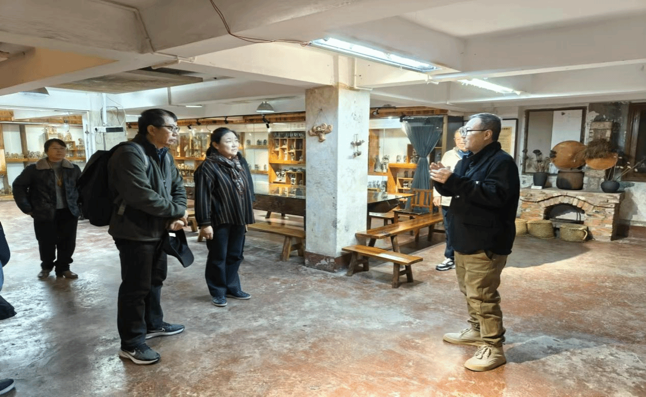 在参观过程中,王飚教授详细介绍了传习馆的历史沿革,以及多年来在传统文化保护、传承和创新方面所取得的显著成绩。他提到,传习馆不仅致力于传承保护传统民族民间文化,还通过开设公共选修课、举办学术讲座、文化交流活动等形式,搭建起了一个促进学术交流、激发创新思维的平台。