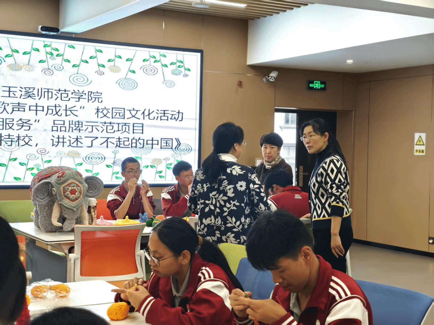 为深入推进玉溪师范学院“一流地方应用型大学建设”,大力提升第二课堂人才培养质量,全力打造“在国歌声中成长”实践育人品牌,构建协同育人体系,玉溪师范学院湄公河次区域民族民间文化传习馆携手玉溪市特殊教育学校,联合打造玉溪师范学院2025年“国歌声中成长”校园文化活动品牌示范项目——《非遗传承进特校,讲述了不起的中国》。2025年5月29日,在玉溪市特殊教育学校五楼大会议室里,一场别开生面的非遗传承活动拉开帷幕。由玉溪师范学院湄公河次区域民族民间文化传习馆冯丽荣老师带领的大学生志愿者们带着钩编非遗技艺走进特校课堂,与孩子们一同体验“指尖上的非遗艺术”。